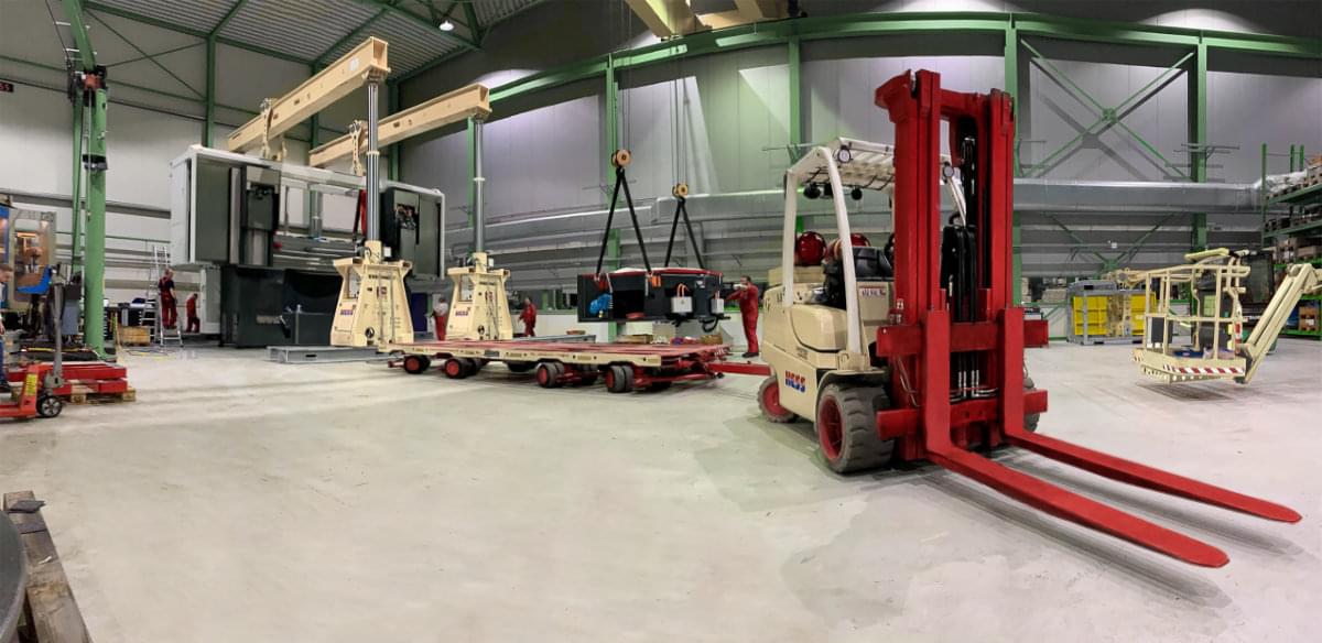 Bei Querverschüben von besonders schweren Maschinenteilen und Einhüben von überdimensionalen Bauteilen ist ein maßgeschneidertes Montagekonzept wichtig, das die geeigneten Transportmittel und Hebezeuge perfekt kombiniert.